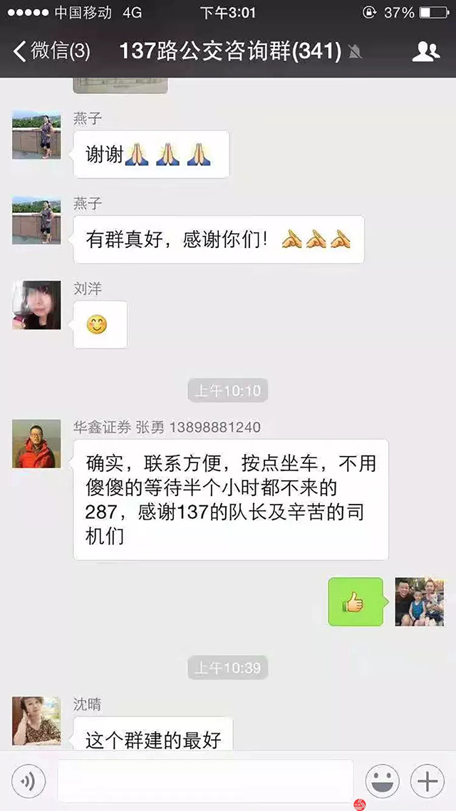 咨詢?nèi)旱慕⒖捎嗅槍π?、高效率地向乘客們收集意見以及完善服?wù)。自咨詢?nèi)航⒁詠?37路車隊的投訴率明顯下降。據(jù)悉,沈蘇公司100路、108路、130路等線路也相繼開通了公交網(wǎng)絡(luò)咨詢及投訴服務(wù)平臺。乘客上車后可以通過掃碼發(fā)表意見。目前更多線路正在嘗試通過創(chuàng)建線路微信群的方式,為市民提供更細致的公交服務(wù)。通過微信群,可有效幫助乘客有針對性地解決線路高峰期內(nèi)等車難、需要增加發(fā)車班次、物品丟失認領(lǐng)等問題,實現(xiàn)公交線路的精細化管理與服務(wù)。