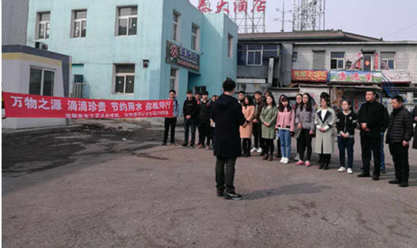 圖為:218路車隊(duì)黨支部與沈陽(yáng)農(nóng)業(yè)大學(xué)水利學(xué)院在218路終點(diǎn)站大東門(mén)廣場(chǎng)開(kāi)展宣傳《萬(wàn)物之源 滴滴珍貴 節(jié)約用水 你我同行》為主題的倡議儀式,農(nóng)大水利學(xué)院的學(xué)生在大東門(mén)廣場(chǎng)與車隊(duì)職工共同宣傳節(jié)約用水,人人做起,從點(diǎn)滴開(kāi)始。通過(guò)宣傳,讓大家了解節(jié)約用水的重要意義。
