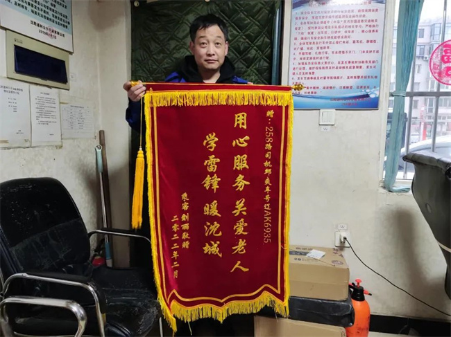 2月10日,258路車隊迎來一位熟悉的面孔,她帶著印有“認(rèn)真負(fù)責(zé) 拾金不昧”的錦旗,說是要謝謝駕駛員房冬生。