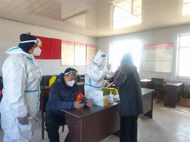 發(fā)揮退伍軍人優(yōu)勢,召集本村黨員、積極分子及退伍軍人,按照村內(nèi)管控“杜絕聚集,嚴防外部流入”的防疫原則,許晨帶領(lǐng)村黨員和志愿者嚴守防疫一線,全覆蓋排查登記大桑林子村在外人員信息,通過電話、微信告知防疫政策,堅持宣傳動員到位,確保全員參與核酸檢測,為行動不變的村民開辟綠色通道。同時,緊盯外省、市返村人員,在村口設(shè)置卡點,安排專人值守對來訪人員和車輛,逢人必檢、逢車必查,不折不扣地做到應(yīng)查盡查、應(yīng)檢盡檢、應(yīng)隔盡隔。