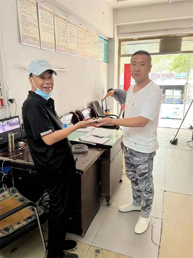 第二天,本該休息的易廣超一大早就來到車隊(duì)辦公室,就怕失主來了取不到手機(jī)。過了一會(huì),一位姓李的男士來到299車隊(duì)認(rèn)領(lǐng)手機(jī),經(jīng)仔細(xì)核對(duì),李先生拿回了自己失而復(fù)得的手機(jī),感慨道:“手機(jī)雖然不貴重,但是里面保存的資料和照片對(duì)自己非常重要,多虧遇到易廣超這樣負(fù)責(zé)任的駕駛員,自己才避免了不必要的損失。”當(dāng)?shù)弥讖V超放棄休息時(shí)間早早來到車隊(duì)給自己送電話,李先生立即伸出大拇指,難以掩飾對(duì)易廣超深深的感激和贊許之情......