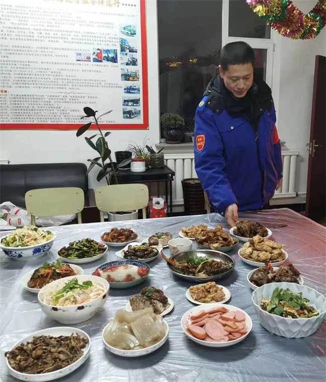 除夕當(dāng)天,各車(chē)隊(duì)為堅(jiān)守崗位的駕駛員準(zhǔn)備了豐盛的年夜飯,車(chē)隊(duì)親如一家,其樂(lè)融融。