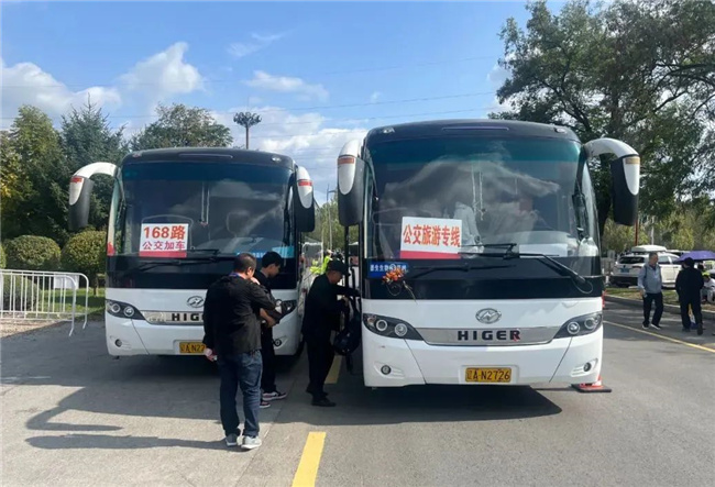 華龍公司開(kāi)通公交旅游專線(沈陽(yáng)北站至棋盤(pán)山景區(qū))和“沈水之陽(yáng) 我心向往”秋韻情意濃“十一”旅游免費(fèi)直通車(chē)線路(沈陽(yáng)市府廣場(chǎng)至祝家小鎮(zhèn)),為游客提供安全、舒適、便捷的乘車(chē)體驗(yàn)。