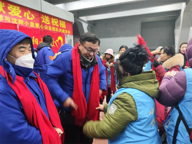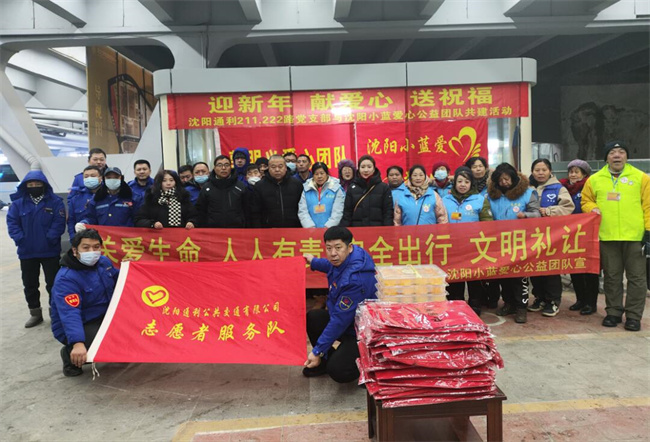 12月22日上午10點,沈陽小藍(lán)愛心公益團(tuán)隊走進(jìn)211.222路公交車隊開展“迎新年獻(xiàn)愛心送祝?!蔽繂柣顒?。