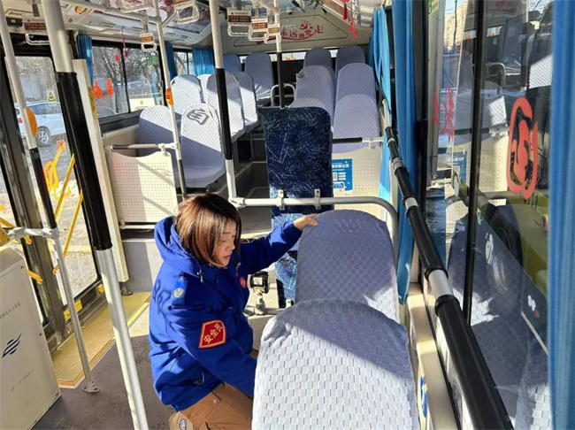 方堃是一位性格開朗的女駕駛員,她已經(jīng)在239路工作快三年了。心細的方堃在工作中發(fā)現(xiàn),盡管車內(nèi)有暖風系統(tǒng),但冬季仍然較為寒冷,為了讓乘客溫暖乘車,方堃萌生了為車內(nèi)座椅增加座墊的想法。