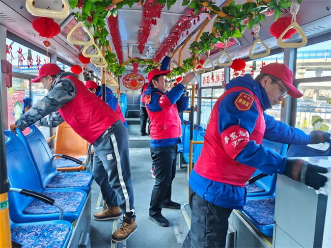 近日,211.222路黨支部全體黨員干部職工在龍之夢公交樞紐站開展清潔運營車輛、場區(qū)候車廊及站務(wù)室活動,打造年味公交。