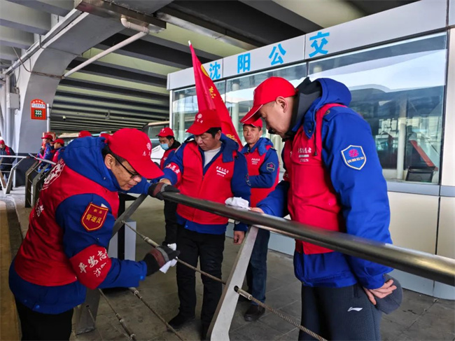 周末氣溫零下十幾度,嚴寒中,志愿者們分工合作,認真清理雜物,細摳衛(wèi)生死角,擦拭候車廊排隊護欄,清除樞紐站內(nèi)的垃圾污物,撿拾道路綠化帶內(nèi)的垃圾,治理亂堆亂放及候車廊亂貼亂畫等行為,充分發(fā)揮了“奉獻、友愛、互助、進步”的志愿服務(wù)精神,以實際行動叫響“我是雷鋒”,以清潔環(huán)境迎接八方來沈游客。