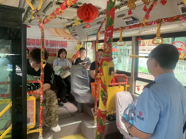 高考前一天,沈蘇公司車隊在車內張貼鼓勵考生的條幅、裝飾一些溫馨的圖案。高考當天,324路車隊派出一輛公交車,為第三十中學考點的學生及家長提供休息場所。