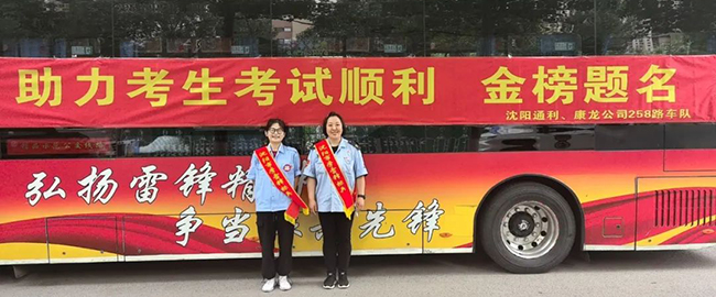 高考期間,一、二分公司王樹祥勞模黨員志愿者服務隊所在的224路車隊1129號車、沈陽市精品示范線路158路車隊0452號車變身“愛心助考車”。