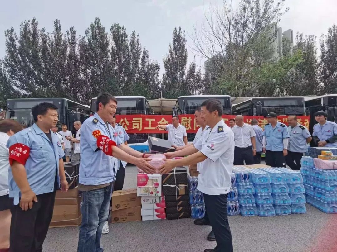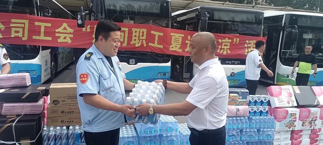 黃河公司心系職工,7月23日下午,公司負(fù)責(zé)人來到西江街公交樞紐站開展“慰問職工 夏送清涼”活動,將“清涼”送到運營一線,送到職工的心坎上。