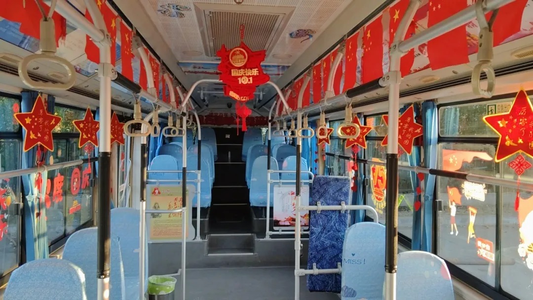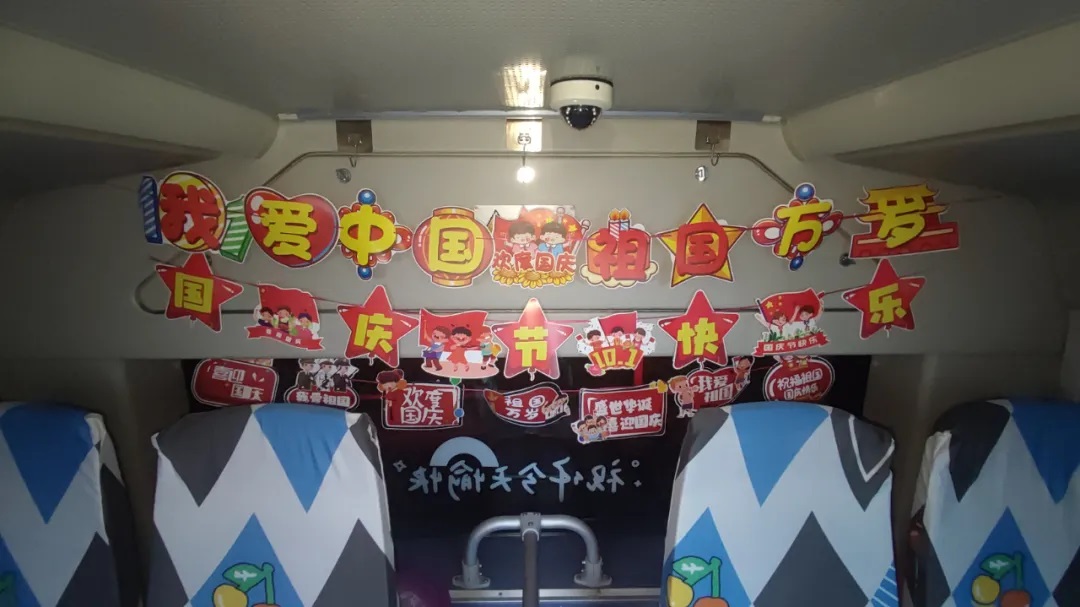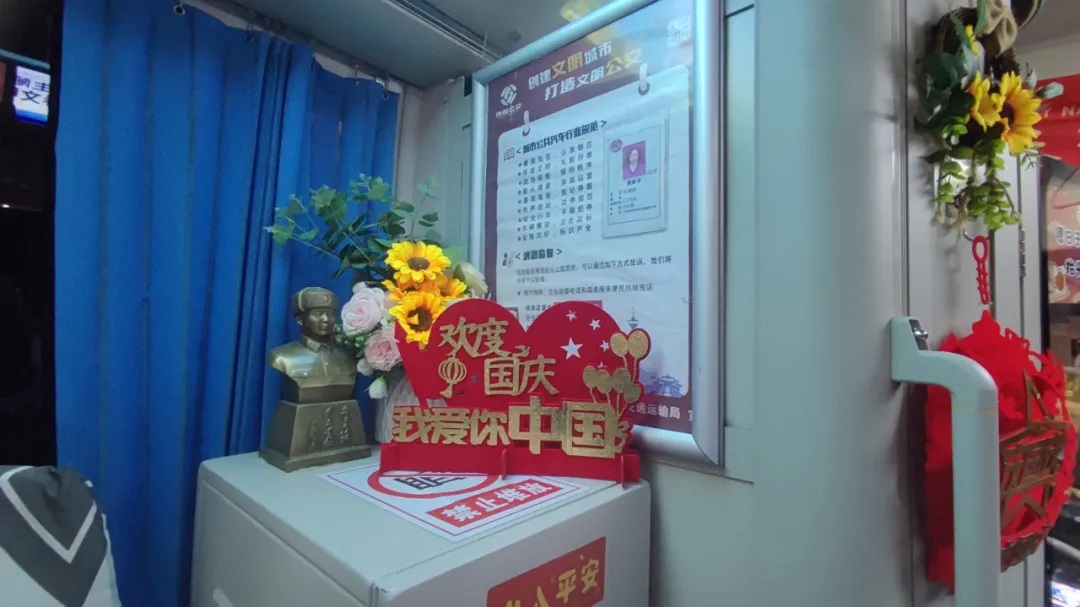 國慶前夕,駕駛員精心清潔車輛、裝扮車廂,處處洋溢著節(jié)日氣氛。