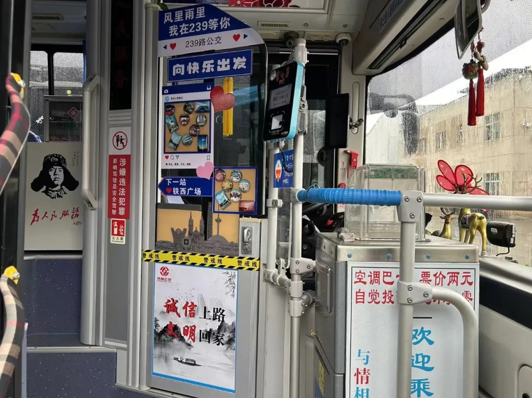 各車隊準(zhǔn)備了各式各樣的裝飾品精心裝扮自己的車廂。駕駛員們將自己對祖國的美好祝愿注入在這十米車廂之中,希望能把這份心意傳遞給每一個人。市民們在乘車時被這份情感所感染,也紛紛留下了自己的心愿和祝福。