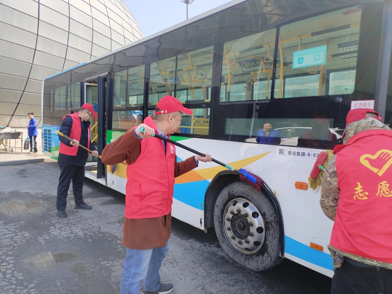 活動(dòng)當(dāng)天,各車隊(duì)管理人員和駕駛員早早來到車隊(duì),分成幾個(gè)小組,分別對場區(qū)、候車亭以及公交車廂進(jìn)行了全面清潔。志愿者們手持掃帚、抹布、消毒液等工具,認(rèn)真清理場區(qū)內(nèi)的垃圾、雜物,擦拭候車亭的座椅和宣傳欄,并對公交車廂內(nèi)的座椅、扶手、車窗等部位進(jìn)行了細(xì)致消毒和清潔。