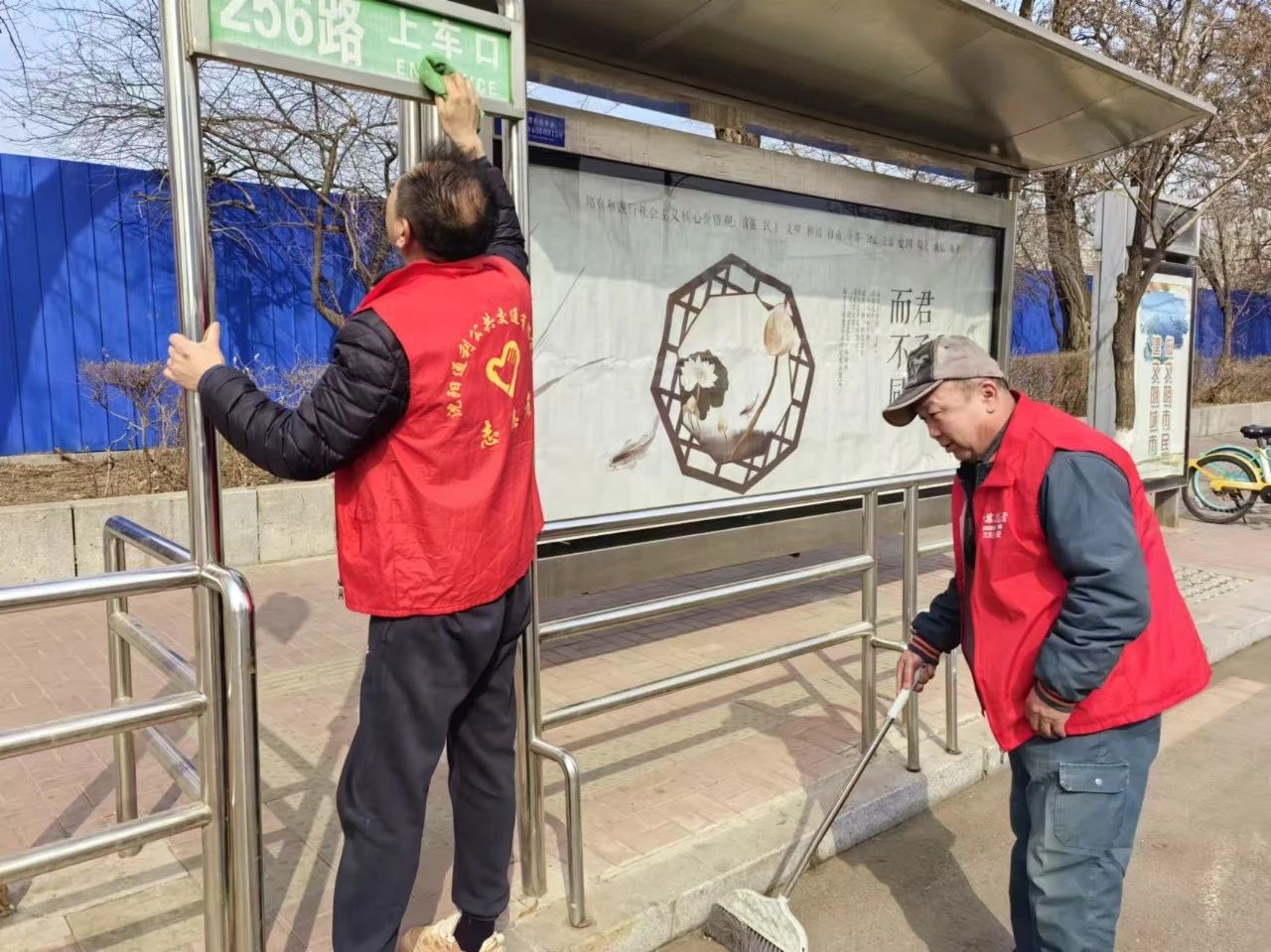路過的市民看到志愿者忙碌的身影連連點(diǎn)贊,還有熱心市民主動(dòng)加入志愿隊(duì)伍出一份力。最終在全體黨員志愿者和熱心市民的共同努力下累計(jì)清理垃圾10余袋,處理小粘貼20余處,場區(qū)和候車?yán)刃l(wèi)生煥然一新。