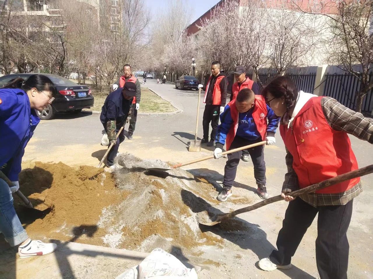 活動中,志愿者們對越冬垃圾、積存垃圾、衛(wèi)生死角等進(jìn)行全面清理,為小區(qū)鋪設(shè)電動車停車位場地地磚。大家干勁十足,齊心協(xié)力,圓滿完成了工作,此次活動排除了安全隱患,凈化、美化、亮化了社區(qū)環(huán)境,得到了社區(qū)居民們的一致好評。