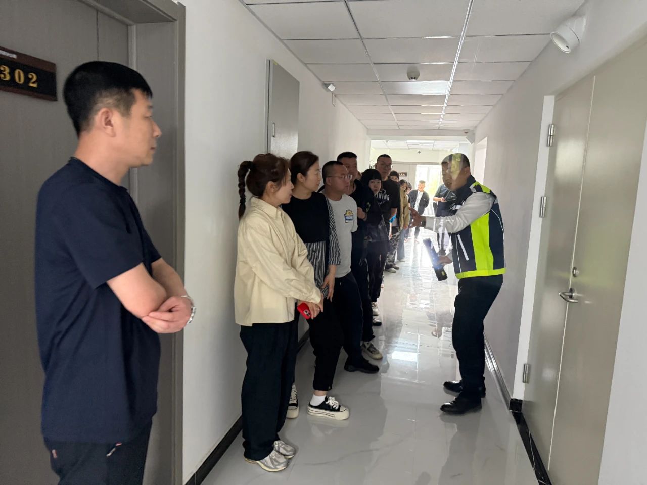 現(xiàn)場演練環(huán)節(jié),“火情警報(bào)”突然在辦公樓內(nèi)拉響,滾滾濃煙瞬間彌漫走廊。在疏散引導(dǎo)員的指揮下,大家迅速捂住口鼻,彎腰俯身,按照預(yù)定疏散路線,從各樓層有序撤離。整個(gè)過程緊張有序,大家爭分奪秒?yún)s不忘保持秩序,全體人員安全抵達(dá)指定疏散集合點(diǎn)。