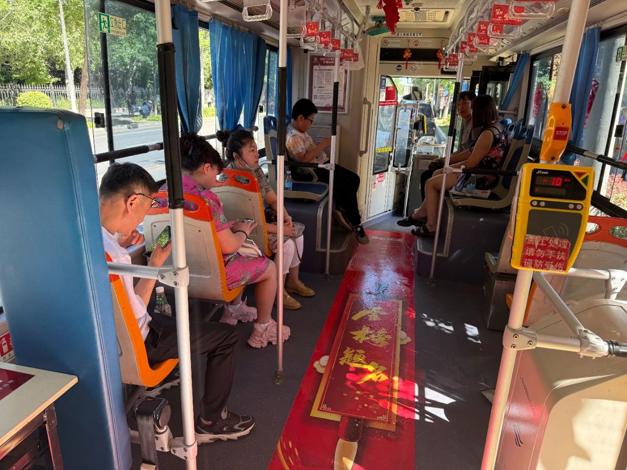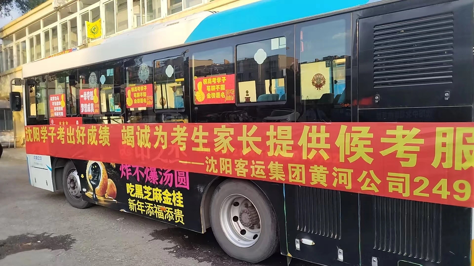 324路(沈蘇公司): 車廂地面鋪著“金榜題名”紅毯,在第三十中學(xué)考點為考生加油。