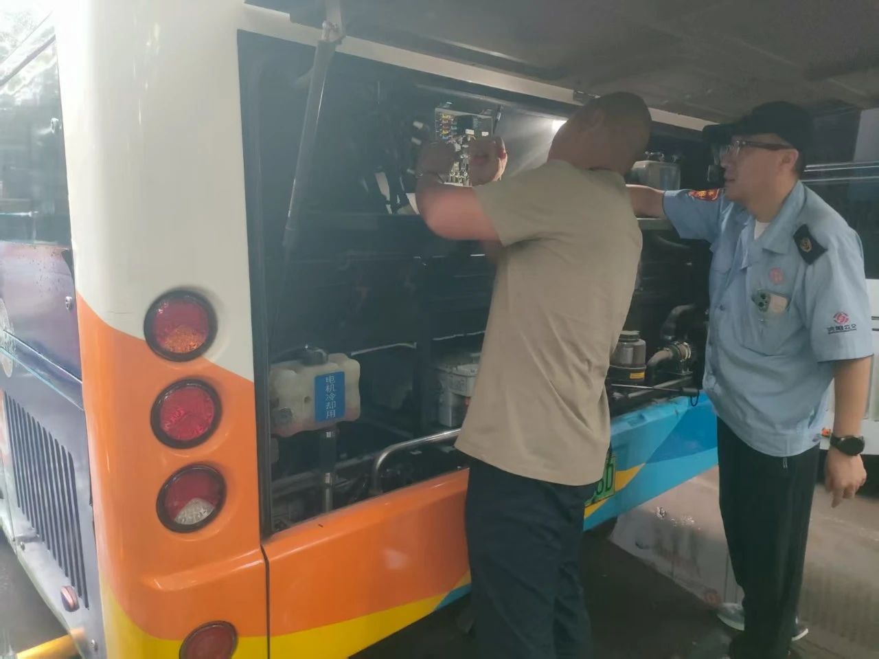 在公交車旁,隊長結合天氣特點,詳細講解應急處置流程——涵蓋“能見度低時應如何控制車速、保持車距”,以及“突發(fā)情況下燈光和剎車的規(guī)范操作”等方面,細致入微,筑牢安全防線。