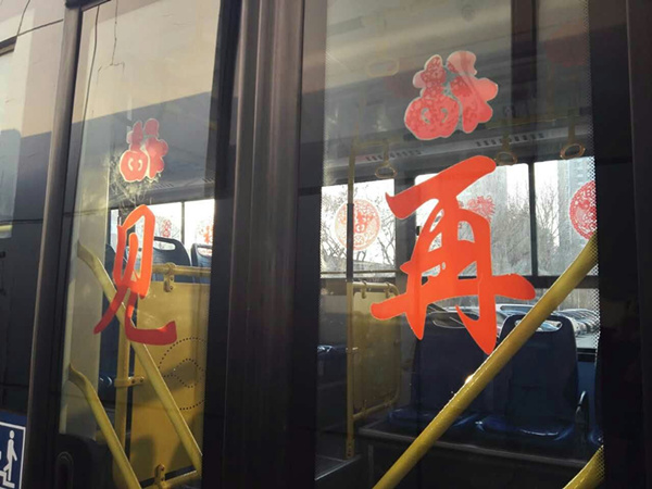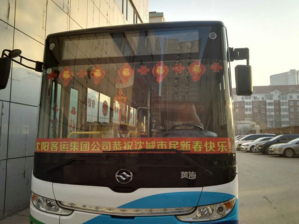 沈陽(yáng)客運(yùn)集團(tuán)公司精心布置了車(chē)輛,粘貼了新年祝福標(biāo)語(yǔ)、福字、窗花,懸掛中國(guó)結(jié)和小燈籠,在車(chē)廂內(nèi)進(jìn)行裝飾,營(yíng)造出移動(dòng)的溫馨家庭感覺(jué)。