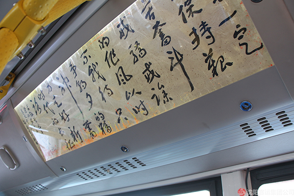 昨日,集團(tuán)公司領(lǐng)導(dǎo)班子一同前往全運(yùn)五路公交樞紐站,檢查全國(guó)首條“藝術(shù)公交”130路車身設(shè)計(jì),該線路將成為我國(guó)首條“行走的藝術(shù)走廊”。 為給市民,乘客提供美觀、舒適、藝術(shù)氣息濃厚的乘車環(huán)境,集團(tuán)公司與和平區(qū)文聯(lián)共同設(shè)計(jì)車身裝飾。首臺(tái)“藝術(shù)公交”車身外采用我市書(shū)法大家的書(shū)法作品,充分體現(xiàn)了城市獨(dú)有的文化底蘊(yùn)。車廂內(nèi)看板展示了名家書(shū)法真跡,仿若置于翰林書(shū)院。書(shū)法作品以切實(shí)增強(qiáng)意識(shí)形態(tài)為目的,以宣傳貫徹十九大精神為主題。此外,車廂前端一側(cè)設(shè)有液晶顯示屏,播放各種藝術(shù)形式的短片。使得公交車融入了文化的內(nèi)涵,搖身一變成為了城市“流動(dòng)的藝術(shù)展廳?!?/p>