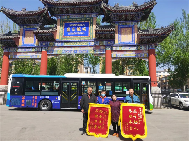 4月18日上午,84歲的韓善珍奶奶在兒子的陪同下將兩面寫有“樂于助人、盡職盡責(zé)”,“拾金不昧、盡職盡責(zé)”的錦旗送到211.222路北...
