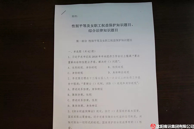 2019年3月19日下午14時(shí),集團(tuán)公司舉行了“沈陽客運(yùn)集團(tuán)有限公司女職工權(quán)益保護(hù)和綜合法律知識(shí)培訓(xùn)答題活動(dòng)”,集團(tuán)機(jī)關(guān)女職工共計(jì)20余人參加了此次答題活動(dòng)。