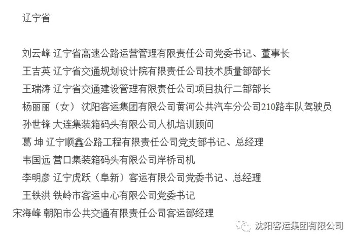 6月12日,遼寧省交通廳舉辦了表彰大會(huì),表彰全國交通運(yùn)輸系統(tǒng)先進(jìn)集體勞動(dòng)模范和先進(jìn)工作者,集團(tuán)公司210路車隊(duì)駕駛員楊麗麗榮獲“全國交通運(yùn)輸系統(tǒng)勞動(dòng)模范”稱號(hào),與集團(tuán)公司總經(jīng)理助理王麗一同出席了本次表彰大會(huì)。