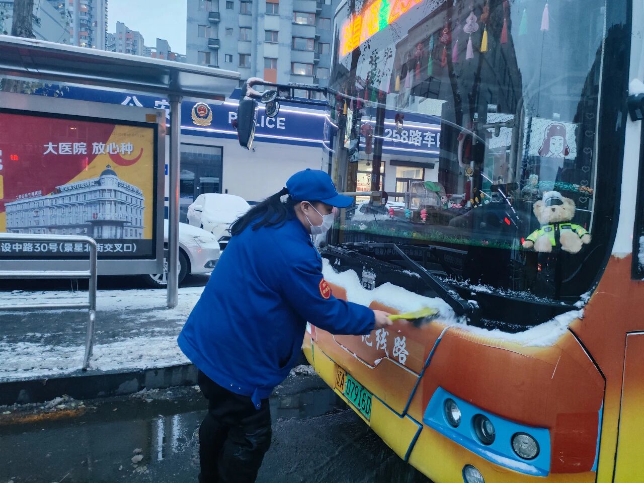 駕駛員在運(yùn)營過程中嚴(yán)格遵守雪天行車規(guī)范,謹(jǐn)慎控制車速,保持安全距離,并貼心提醒乘客扶穩(wěn)坐好。在途經(jīng)無護(hù)欄路段、人行橫道時,主動減速避讓,禮讓行人,展現(xiàn)出專業(yè)的駕駛素養(yǎng)與暖心的服務(wù)意識。同時,他們及時將路面雪情、通行條件等信息實時反饋至調(diào)度中心,為靈活調(diào)整運(yùn)營方案、科學(xué)調(diào)配運(yùn)力提供了重要的信息支撐。