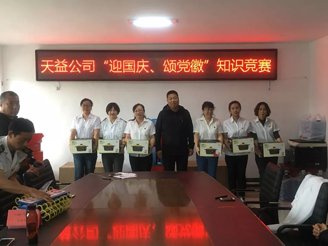 近日,天益公司黨委在公司會議室舉行“迎國慶、頌黨徽”黨建知識競賽活動,來自公司所屬11個黨支部,共33人參加競賽;公司黨委副書記、紀(jì)委書記趙立東、副經(jīng)理丁峰同志、基層各黨支部書一同參加了本次比賽。