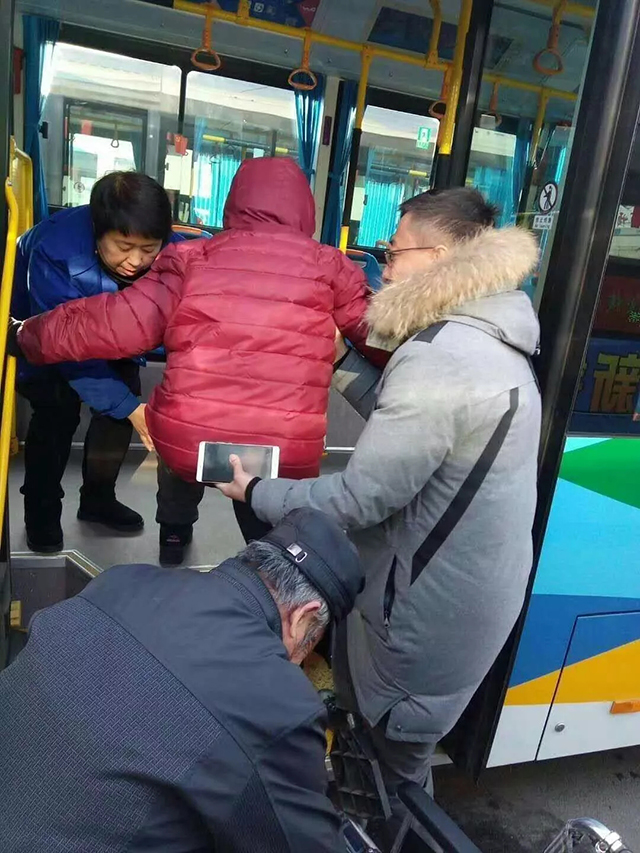 患病的劉阿姨十一年前患上了尿毒癥,兒女不在身邊,只有她和老伴相依為命,每周需要三次透析,隨著病情的加重,從2016年開始,老伴開始用輪椅推她出行。雖然行動(dòng)不便,但受經(jīng)濟(jì)條件限制,他們?nèi)メt(yī)院透析也只能首選乘坐209路公交車。兩位老人成了209路的???,看到老人上下車不方便,一向以優(yōu)質(zhì)服務(wù)著稱的209路駕駛員們便自發(fā)的對(duì)他們提供了特殊服務(wù),每次遇到老人在車站等車,駕駛員們便停穩(wěn)車輛,下車從后門幫老人把輪椅抬上車,再把老人攙扶上車,遇到老人身體不舒服,駕駛員干脆把劉阿姨背上車。這一背就是三年,兩位老人享受著路線上30余位駕駛員的VIP服務(wù),二老感激的心情無以言表。國慶節(jié)期間,兩位老人特意制作了一面寫有“雷鋒精神代代傳”的錦旗送到車隊(duì),并請(qǐng)來了遼寧電視臺(tái)來到209路車隊(duì)對(duì)2這些助人為樂的駕駛員們進(jìn)行了采訪。采訪中,大家紛紛表示:“看到老人上車太吃力,不幫助他們心里過意不去。